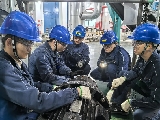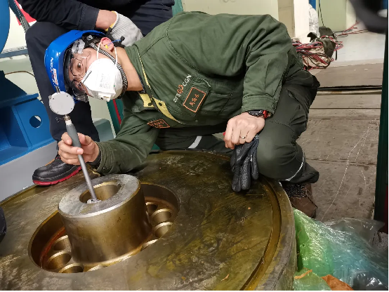 經現場核實,果然是檢修時未對系統排水,殘余壓力使泵轉子產生向外的軸向力。釋放壓力后,軸承膨脹間隙即刻恢復至標準范圍,成功避免了軸承二次拆卸更換的無效作業。面對現場轉動設備的多樣問題,周海東始終保持“質疑精神”,不盲從經驗、不迷信權威,總能以精準判斷破解癥結。