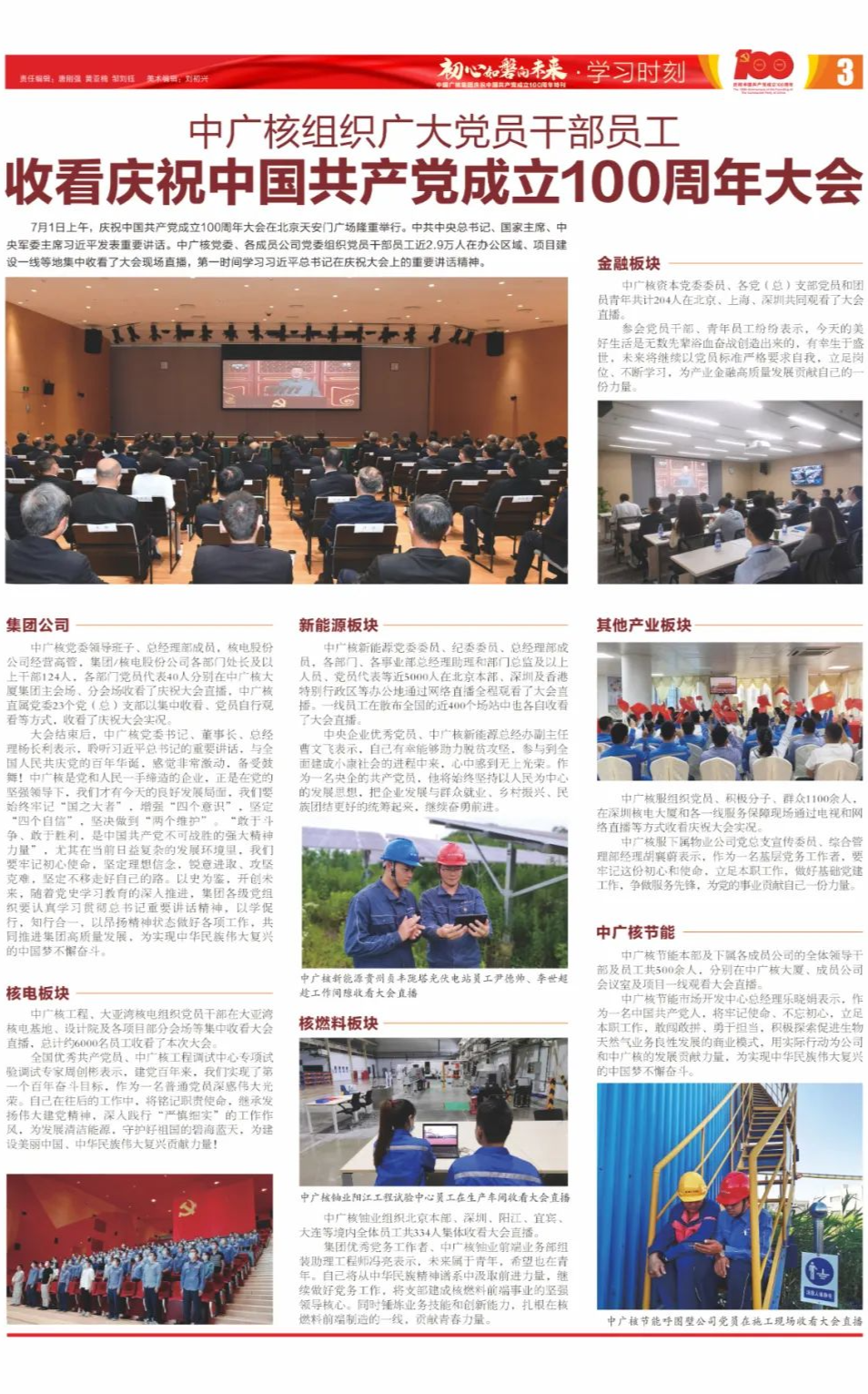 習近平總書記“七一”重要講話在中廣核引發熱烈反響