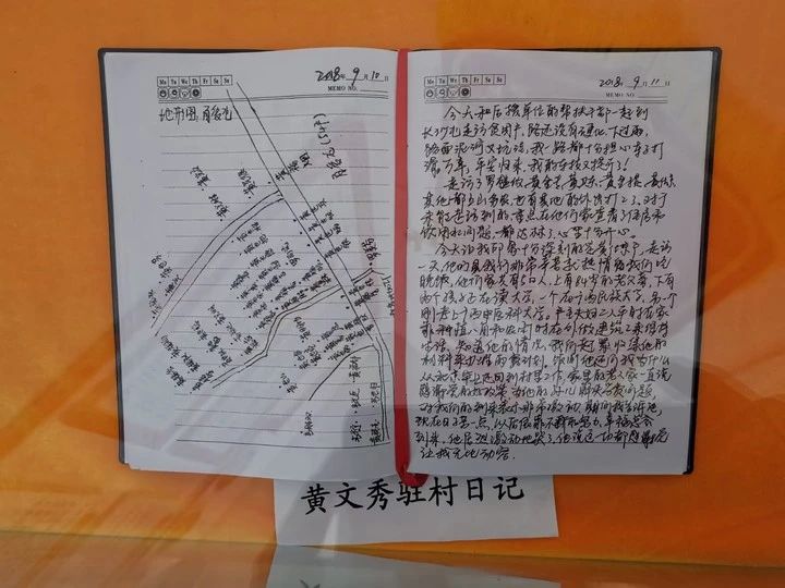 陳列館里還留著黃文秀同志生前的許多東西,彷佛她一直就在我們身邊,從未離開。她的扶貧手記里面詳細記載著村里的“貧困戶家庭分布圖”以及入戶走訪了解到的內容。從字里行間中,能看出她從一個扶貧“新手”逐漸成為“熟手”的過程。從困難群眾最開始對她的質疑,到后來慢慢接受她、認可她、信任她,這過程充滿了艱辛和委屈,但她始終將自己的責任扛在肩上,將自己的初心牢記心中。