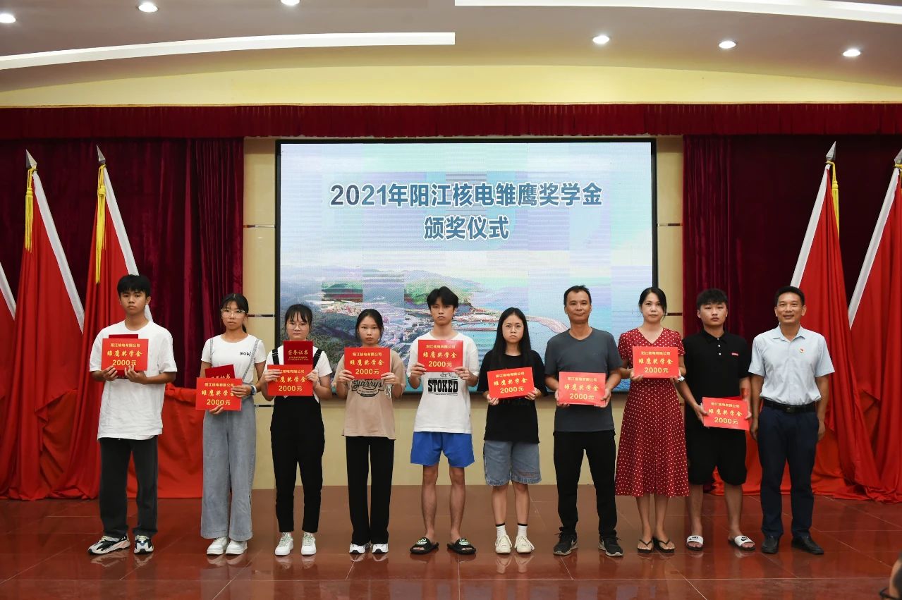 8月26日上午,在臨近開學之際,陽江核電有限公司(簡稱“陽江核電”)在廣東省陽江市陽東區東平鎮舉行2021年陽江核電雛鷹獎學金頒獎儀式,表彰和獎勵東平鎮允泊村37名考上高等院校和重點高中的優秀學子。自2014年設立獎學金以來,累計有195人獲得“陽江核電雛鷹獎學金”。