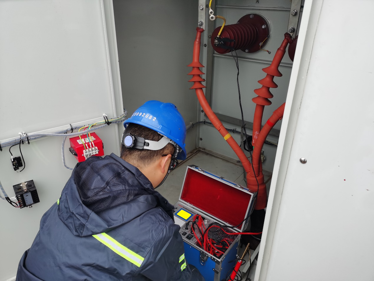 ▲10月3日,中廣核盂縣西煙鎮風光互補電站對026號風機箱變高壓室B相避雷器搶修