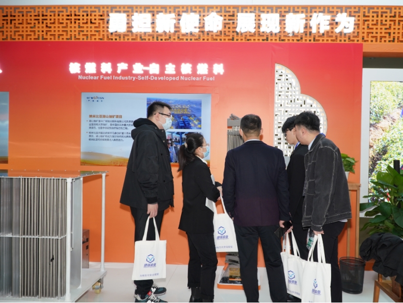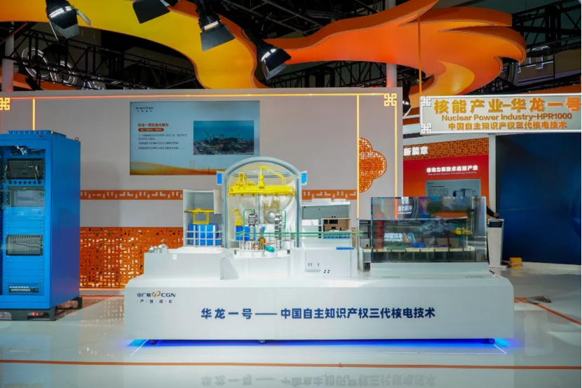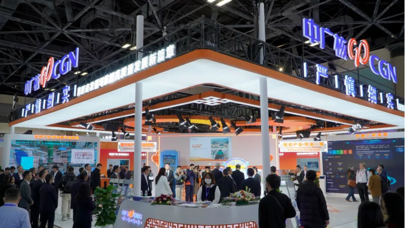 開幕式后,與會嘉賓來到中廣核展臺,聽取并了解中廣核近年來在“華龍一號”批量化建設、科技創新等方面的高質量發展成果。