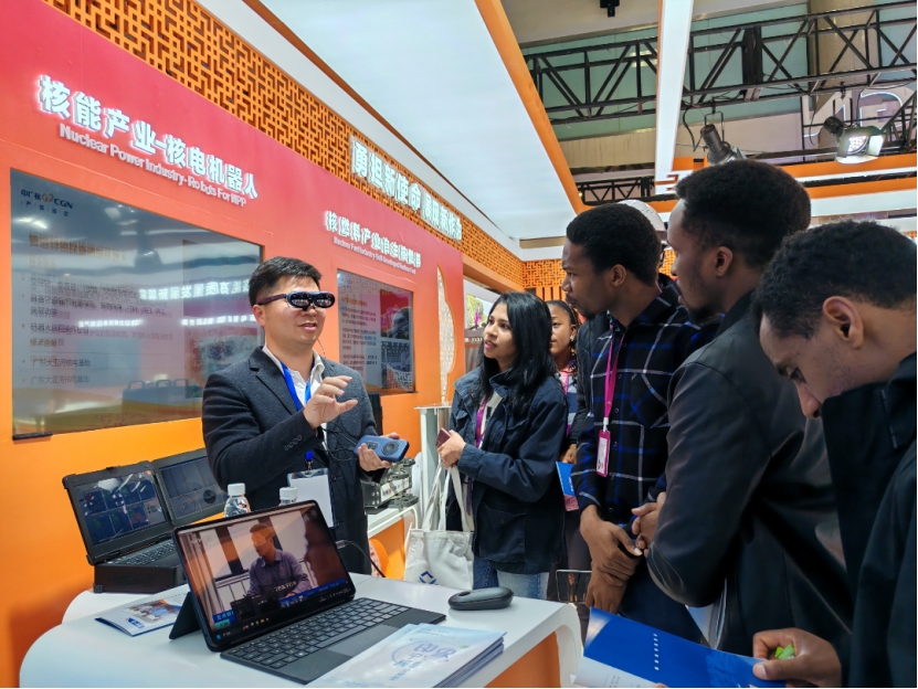 展覽現場,觀眾可以戴上AR智能頭盔進行人機交互,體驗操縱機器狗巡檢核電廠房,還可以“深入”寧德核電作業管理中心,沉浸式接觸全范圍模擬機,直觀感受“元宇宙”在核電領域的前沿應用。中廣核以科技創新引領核能新質生產力發展,以“數智化”賦能提升核電管理水平,確保核安全萬無一失。