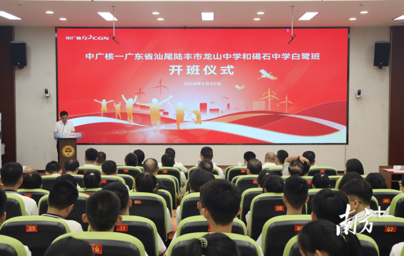 為深入貫徹落實廣東省委“百縣千鎮萬村高質量發展工程”決策部署,以教育幫扶推動地方人才振興,5月20日,“中廣核—廣東汕尾陸豐市龍山中學、碣石中學白鷺班”開班儀式在陸豐市龍山中學舉行?!鞍槹唷闭猩饕嫦騺碜约彝ソ洕щy(一般)且成績優秀的學生,學生將受到中廣核的專項幫扶,其中包括獎學金、助學金等。