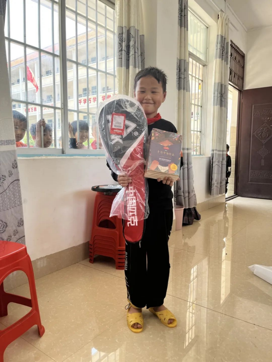 活動結束后,志愿者們給孩子們贈送了學習用品,每位學生都收到了專屬禮物。這次活動不僅讓學生們體驗了運動的快樂和協作精神,也為留守兒童帶來了更多的關愛和溫暖。