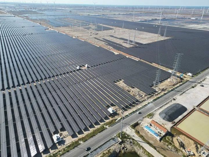 中廣核山東萊州600MW鹽光互補光伏發電項目位于萊州市土山鎮,項目于2024年6月15日正式開工建設,2024年7月15日首批組件安裝完成。截至目前,該項目送出線路、配套儲能、升壓站各項設備已完成施工,支架/組件、集電線路及場區道路建設正在進行最后沖刺階段。