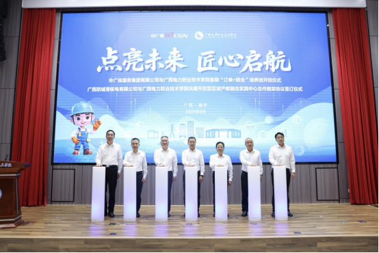 調(diào)研期間,高立剛還參加了中廣核服、防城港核電與廣西電力職業(yè)技術(shù)學(xué)院聯(lián)合舉辦的“點(diǎn)亮未來(lái),匠心啟航”企校合作啟動(dòng)儀式。集團(tuán)所屬單位創(chuàng)新嘗試將“鄉(xiāng)村振興”這一“國(guó)之大者”與“產(chǎn)業(yè)工人隊(duì)伍建設(shè)”這一制造強(qiáng)國(guó)根基工程緊密融合,持續(xù)探索以人才賦能推動(dòng)地方發(fā)展與產(chǎn)業(yè)振興的新路徑。