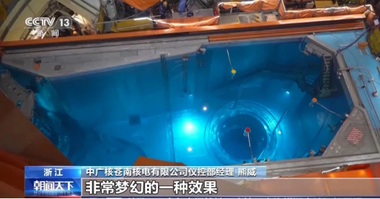“這個區域就是整個核島廠房最核心的區域,我們一般叫反應堆水池。這里面的液體是含硼酸的溶液,所以呈現的效果是非常漂亮,非常夢幻的。現在因為是整體的系統調試階段,這個階段把水先充上,檢查整個水池的泄漏情況,主要是對前期的密封效果進行檢驗。”熊威介紹到。